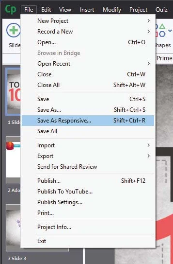 When Captivate 8 was released and introduced responsive design to eLearning, one question came up again and again. "What about my old projects?" I was hoping to see this addressed in Captivate 9 but unfortunately, it was not. In a way, I'm glad because I don't think Captivate 9 would have handled it well. With Captivate 2017 I can open a non-responsive project and save it as responsive. It literally is that easy. Of course when you open the newly created responsive project there will be some work ahead of you as you tweak most of the items and their placement on each slide, however, it will be a fraction of time compared with what it would be prior to Captivate 2017.